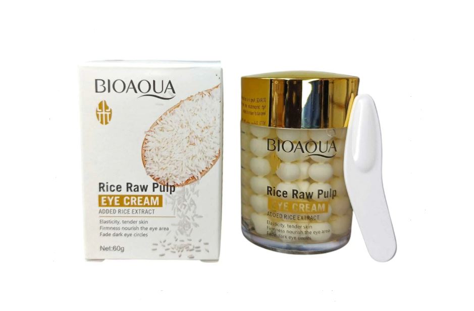 BIOAQUA Crema para ojos de pulpa cruda de arroz Refresca e hidrata la piel del contorno de ojos, mejora las ojeras, aclara las líneas de expresión y rejuvenece la piel, restaura la vitalidad del contorno de ojos y revela una mirada juvenil.